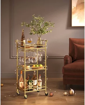 Charming Mirrored Glass Shelves The mirrored glass shelves give this serving cart an attractive charm. They beautifully reflect your wine glasses and bottles, bringing timeless elegance to your home.